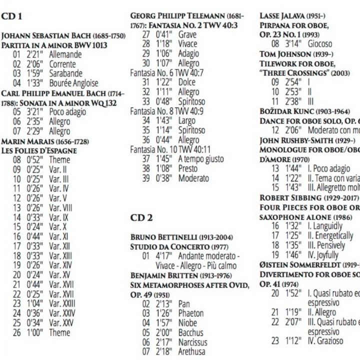 رابرت سیبینگ: چهار قطعه برای ابوا یا ساکسوفون تنها (1986): 16. قطعه اول 17. قطعه دوم 18. قطعه سوم 19. قطعه چهارم
