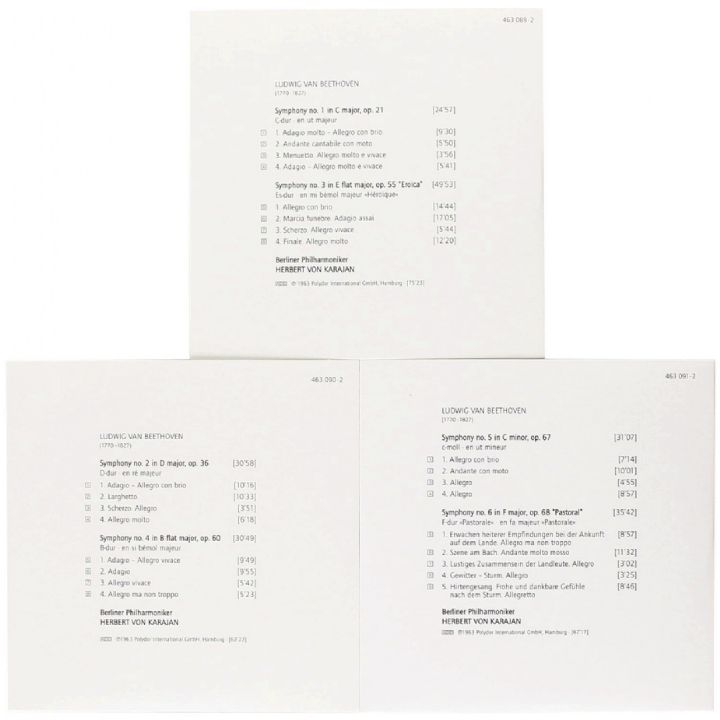 هربرت فون کارایان، رهبر افسانهای اتریشی، چهار مجموعه کامل (سیکل) ضبط استودیویی از سمفونیهای نُهگانه بتهوون با ارکستر فیلارمونیک برلین انجام داده است. این مجموعهها بهعنوان استانداردی طلایی در اجرای این آثار شناخته میشوند. این مجموعه ها توسط انتشارات های دویچه گرامافون و ای ام آی به انتشار رسیده است.